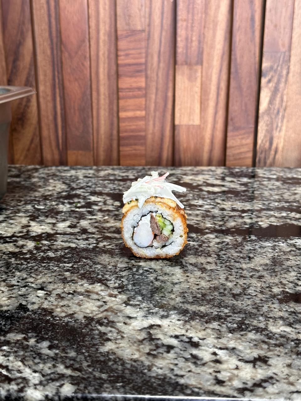 Empanizado por fuera y coronado con ensalada de cangrejo. Crujiente, cremoso y con ese contraste que combina lo mejor de ambos mundos. Un roll que siempre entra con fuerza.