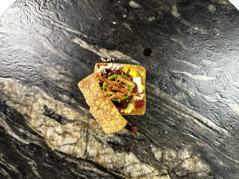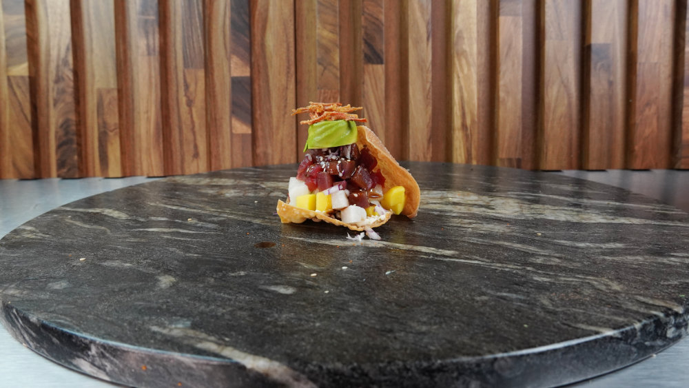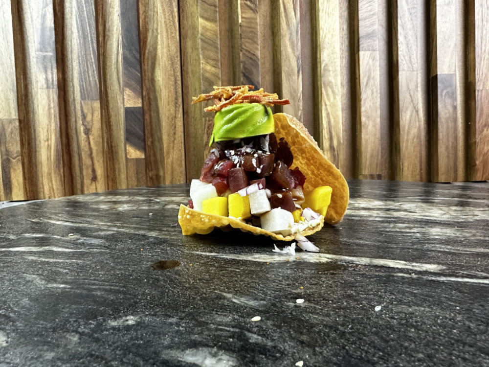 Atún fresco combinado con mango, jícama, aguacate y cebolla morada. Ligera, colorida y llena de sabor. Un bocado que siempre pega perfecto.